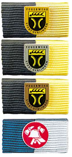 Bandschnalle in Standardgröße 25 x 12 mm zum Aufschieben inklusive einteiligem Unterteil mit Sicherheitsnadel, lieferbare Bandfarben rot, schwarz, dunkelblau, weiß, grün rot-weiß, blau-weiß, grün-weiß, blau-rot (andere Farbkombinationen auf Anfrage!), mit Auflage in Wappen- oder Rundform gold-, silber- oder bronzefarbig nach vorhandenem Werkzeug (Abstufung gold-silber-bronze in einem Aufdruck möglich!), Auflage mehrfarbig bedruckt mit Motiv (z.B. Ortswappen) und Schrift lt. Ihren Angaben, zusätzlich kunstemailliert