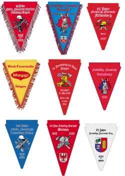 Qualität Seide, einseitig vollfarbig bedruckt lt. Ihren Vorlagen und Angaben, einschl. Holzquerstab mit Eicheln, mit seitl. passenden Fransen und Kordelaufhängung