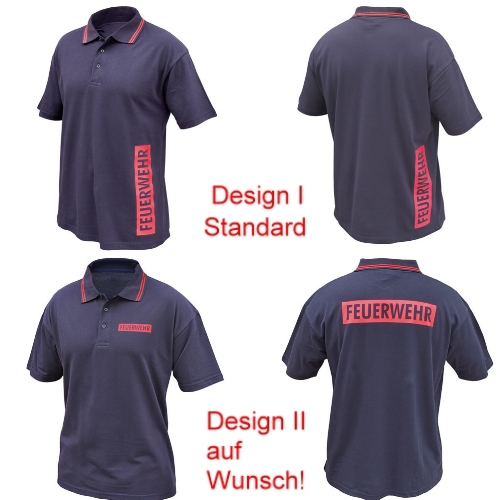 marineblau, mit roten Kontraststreifen am Kragen, ca. 200 g/qm, 100 % Baumwolle, gekämmt, gewirkte Pique-Ausführung, Kragen, Knopfleiste, Nackenband, reaktiv eingefärbt, 1/4 Arm, ohne Ärmelbündchen, inklusive roten Flex- Transfers auf Vorder- und Rückseite lt. Abbildung.