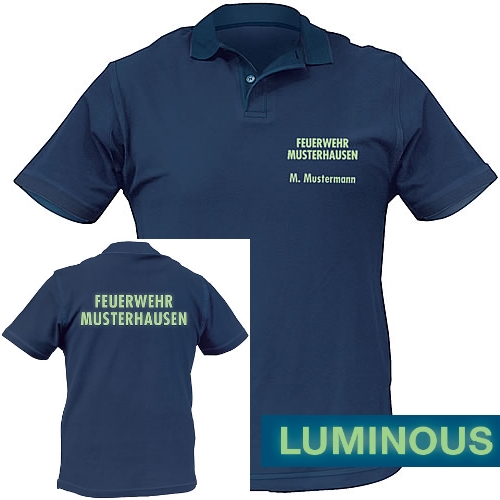 100 % Baumwolle, ca. 180 g/qm, Nackenband, Knopfleiste, Unisexgrößen XS-4XL (Übergrößen, Kinder- und Damengrößen auf Anfrage), inklusive lumineszierender Beschriftung. Luminous ist eine nachleuchtende Flex-Transferfolie mit einem fantastischen Leuchteffekt im Dunkeln. Tagsüber wirkt die Folie in einem typisch weiß-gelb-grünlichen Farbton. In den aufgeführten Preisen ist ein beidseitiger Transfer enthalten: Auf der linken Brustseite eine zweizeilige S chrift z.B. FEUERWEHR + Ihr ORTSNAME und ein persönlicher Name z.B. M. Mustermann und auf der Rückseite großflächig eine zweizeilige Schrift z.B. FEUERWEHR + Ihr ORTSNAME
