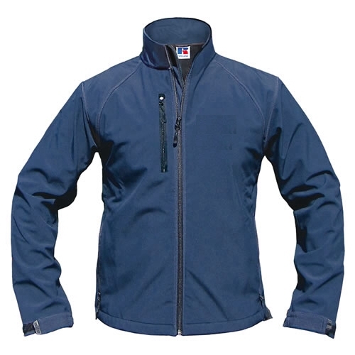 marineblau, 92% Polyester/8% Elasthan, 340 g/qm-Qualität, atmungsaktives dreilagiges Soft Shell-Material, winddicht und wasserabweisend (5000 mm), mit dem Außengewebe verbundenes Microfleece-Futter, trocknergeeignet bei niedriger Temperatur, waschbar bis 40°C, Herrengrößen XS-4XL, Damengrößen XS-4XL