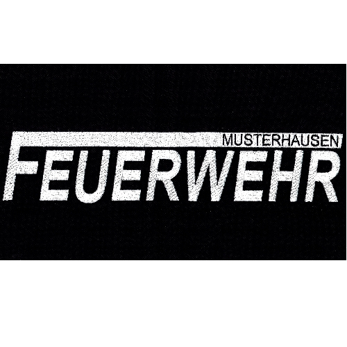Rückseitenbestickung "FEUERWEHR mit langem F und integriertem Ortsnamen"